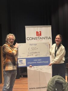 Dinsdag 20 januari was het de beurt aan Muziekvereniging (Harmonie) Constantia. In de pauze van de repetitie ontvingen zij uit handen van Eric Verwijmeren, voorzitter van Ons Etten-Leur, een donatie van € 500.
